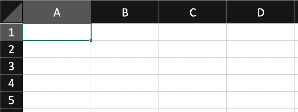 Die Adressen A1 und B1 stehen hierbei für die Zeilen und Spalten des Tabellenkalkulation-programms (Im Bild ist Zelle A1 markiert). Wir nennen sie Eingabeparameter, da sie wie in der Mathematik Platzhalter für den Wert sind, mit dem die Funktion die Berechnung durchführen soll.
